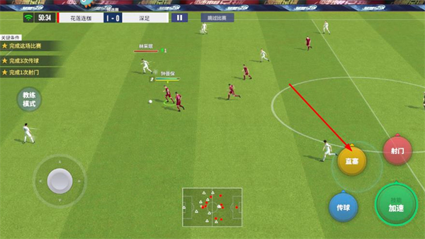 2、当球员处于合适位置时,点击直塞或传球,与队友配合,创造射门机会。