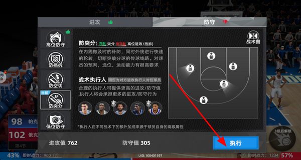 2、执行战术,选择防突分等战术并执行,合理布置球员,切断对手传球线路,提升球队防守。