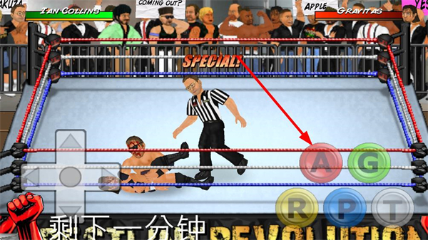 4、黄色R键点击可发动地面攻击,在对手倒地时使用,能对其造成持续伤害,压制对手使其难以起身。