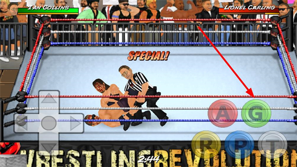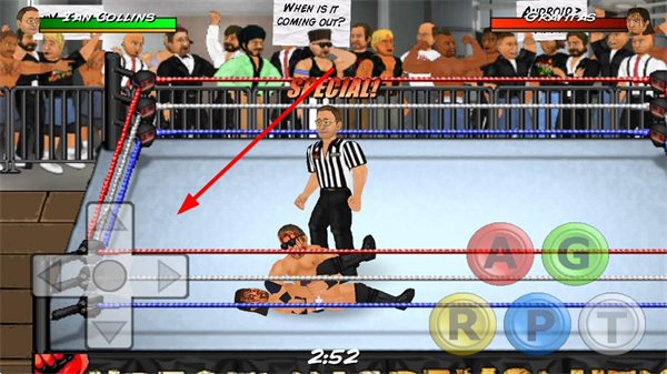 1、十字方向键控制摔角手移动,可在擂台内外自由行走,靠近对手或躲避攻击时调整站位。