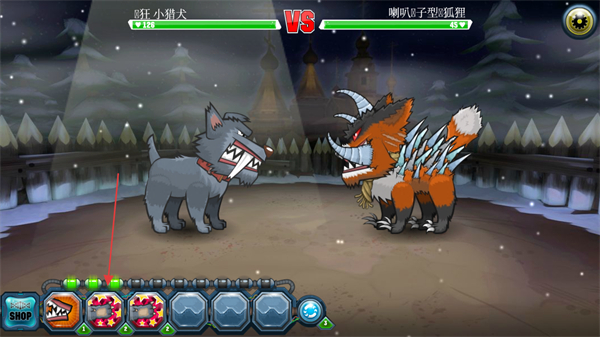 2、操控疯狂小猎犬,选择下方攻击技能,准备对战喇叭V子型狐狸。