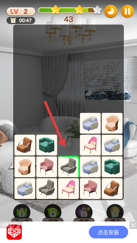 3、金币节省技巧:面对简单关卡尽量不使用金币提示,依靠自身观察完成消除;遇到复杂关卡时,先尝试自主寻找匹配图案,确实卡关再使用金币避免资源浪费。