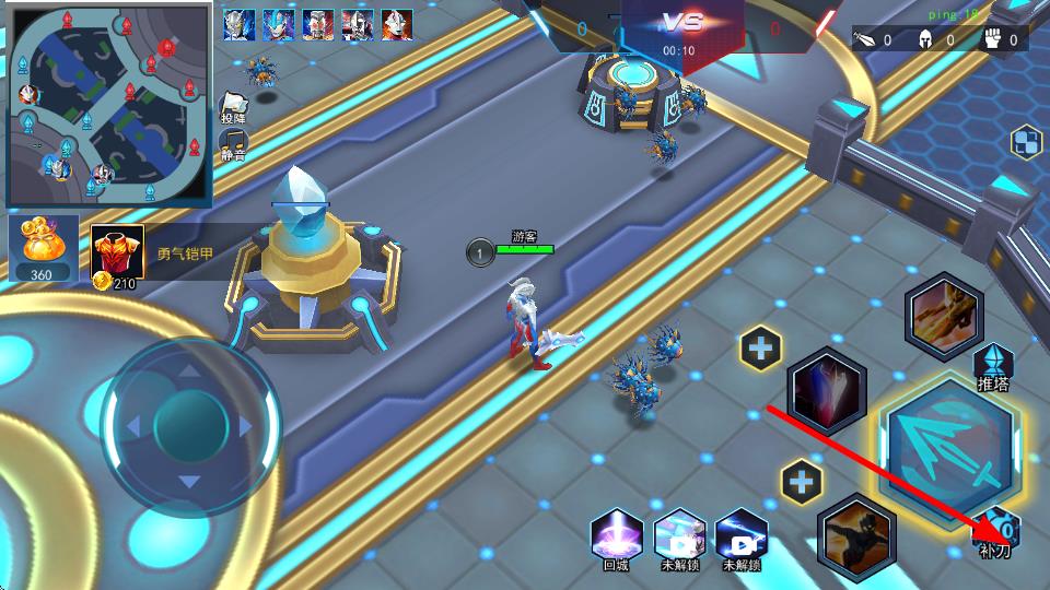 2、点击补刀按键,可对敌方小兵进行最后一击,获取额外金币和经验,提升等级和经济优势。