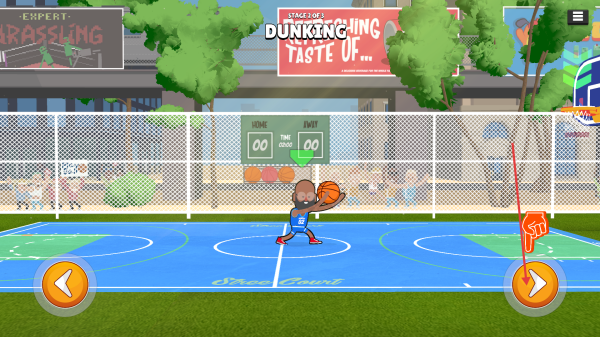 2、轻量化操作设计:核心操作仅需轻触屏幕即可完成,无需记忆复杂按键组合,轻触一次触发跳跃,长按控制挥臂力度,松开完成抓球或扣篮,操作基础降低上手门槛。