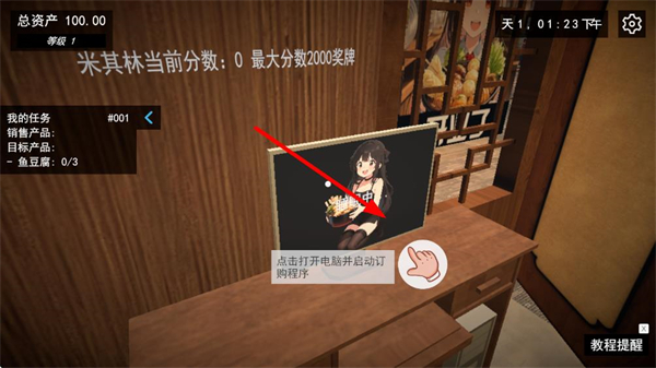 1、移动虚拟摇杆控制角色靠近电脑,点击启动订购程序,进入采购界面选择订购食材。