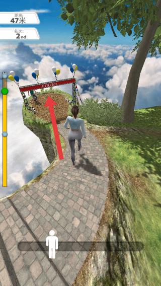 3、看到FINISH标识后,先确认前方是否有障碍,若赛道通畅,保持直线奔跑,若有弯道,提前调整方向,全力冲向终点。