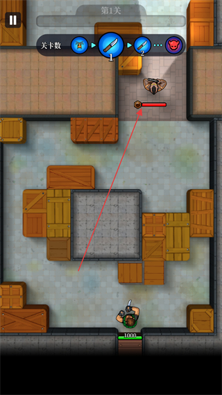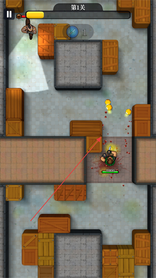 3、击败敌人后收集金币,同时利用场景中的木箱躲避或走位。