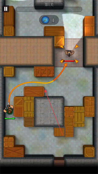 4、继续寻找并攻击剩余敌人,利用轨迹线瞄准,完成关卡。