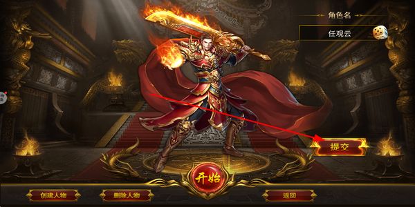 1、创建设置角色名后点击提交,确认角色信息,再点击开始按钮,进入游戏开启冒险。