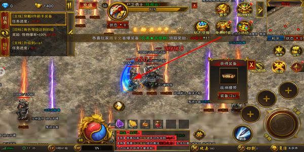 4、攻击击败怪物获得装备,点击装备按钮穿戴该装备,提升角色的属性,增强后续战斗中的作战能力。