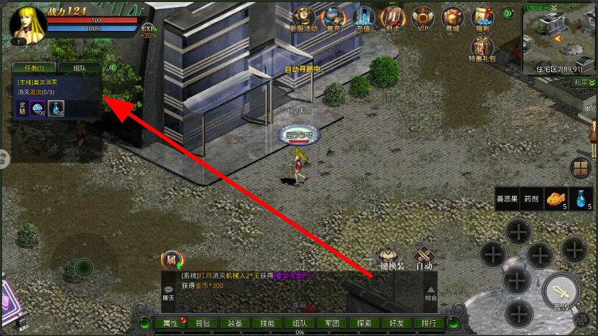 3、进入游戏场景后,会有任务指引,跟随任务提示,了解任务如消灭特定敌人等,推进任务进程,在完成任务过程中获取经验与奖励。