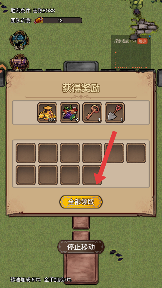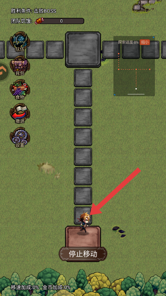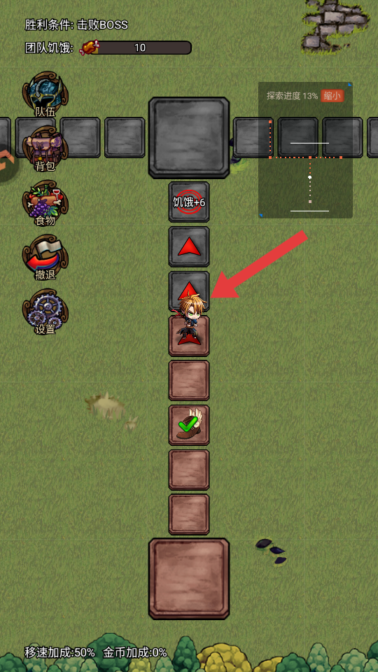 4、战斗经验后,根据地图指引前往BOSS所在地,进入BOSS战回合前,确保团队饥饿值满格、医疗道具充足。