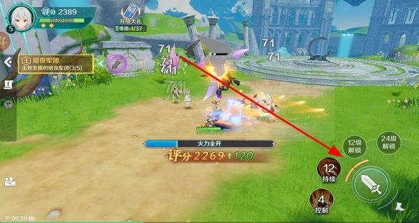4、在战斗中使用普通攻击和技能击败暗夜军团等敌人,获取资源和评分,提升角色战力。
