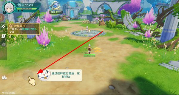 2、移动角色,通过摇杆控制角色前后左右移动,探索游戏场景,与NPC互动,推进剧情发展。
