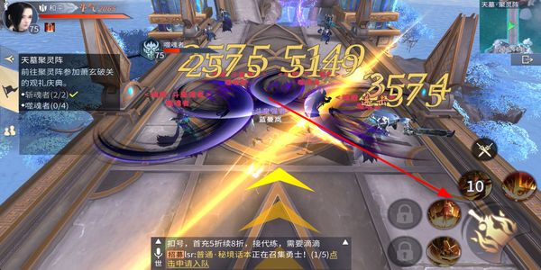 3、进入战斗后点击技能按钮释放招式,对敌方目标造成伤害,完成斩魂者等对应的击杀任务。