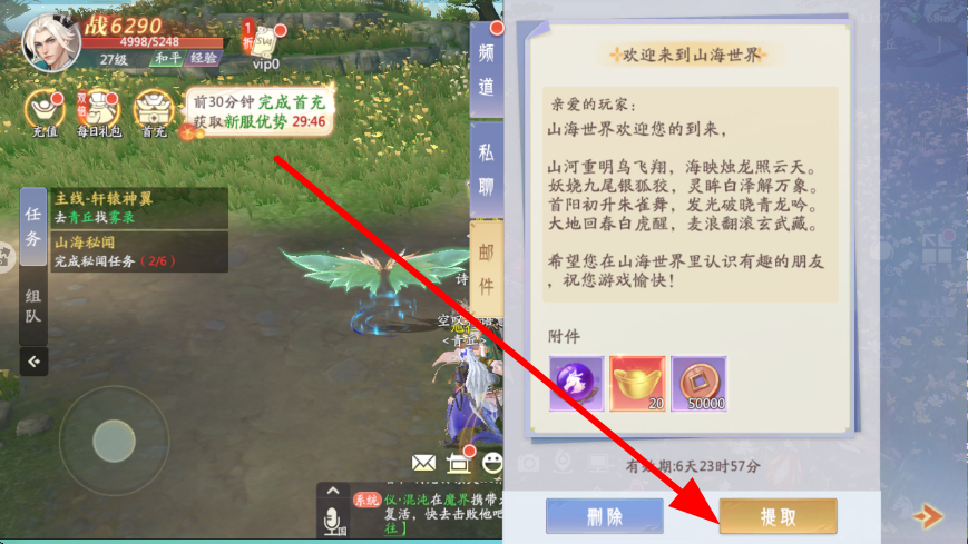 3、在邮件界面,若有系统发送的欢迎邮件等,点击提取按钮,就能获取邮件内的各类奖励,如道具、货币等,这些奖励可助力角色成长与冒险。