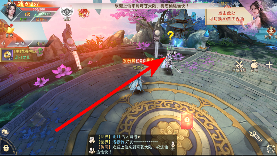 2、然后跟随主线,其中会有主线任务相关提示,按照提示推进,与角色互动,了解剧情,朝着目标地点前进,沉浸体验古风冒险故事。