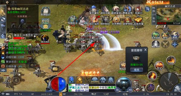 3、击杀怪物时会自动战斗,战斗后可获得道具奖励,点击道具对应的使用按钮,即可给角色装备该道具提升属性。
