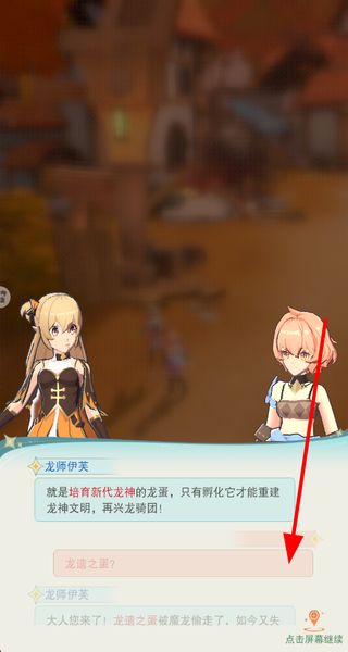 2、与主线任务的NPC进行对话交互,查看对话内容了解剧情信息,点击屏幕继续推进对话流程,解锁后续情节。
