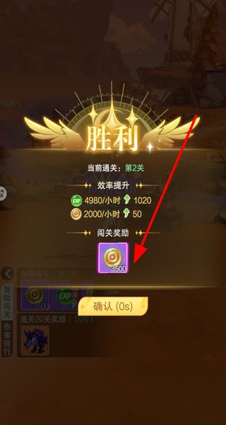 4、通关关卡后显示胜利,查看获得的闯关奖励,等待确认按钮解锁后点击,即可领取奖励并结束当前关卡。