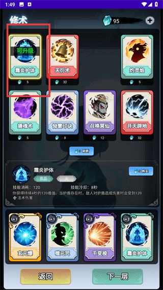 1、开始修仙之后,选择合适的修术,遇到一样的修术点击购买可以升级。