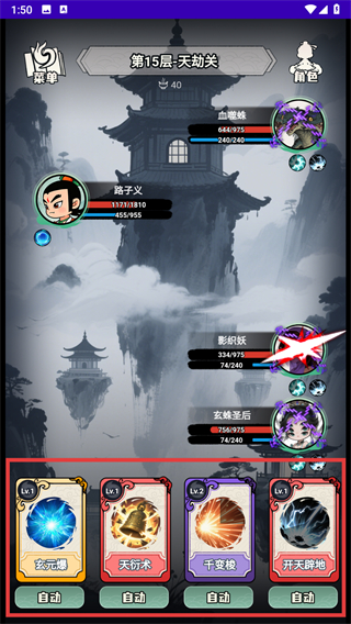 3、开始战斗之后,在合适的时机点击合适的法术攻击敌人,保证自己的血量。