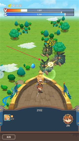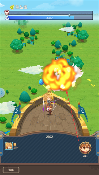 2、操控飞艇攻击草丛怪等敌人,注意敌人的血量条,持续攻击直至将其击败。