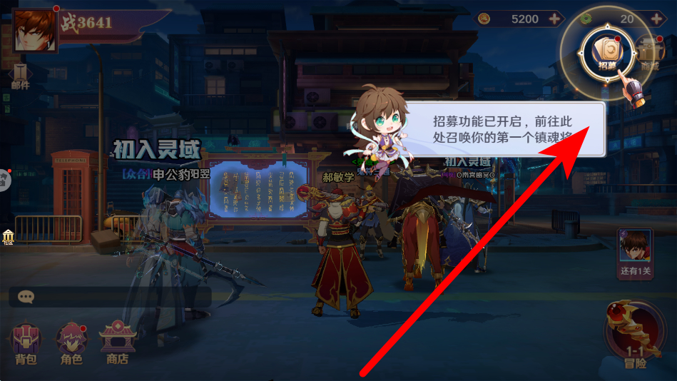 2、然后进行招募,当招募功能开启后,前往指定的招募处,进行招募操作,召唤出自己的第一个镇魂将,为后续战斗增添助力。