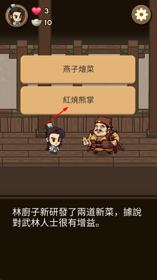 3、通过历练积累江湖声望,突破武功境界,根据剧情走向决定最终江湖地位,成为一代宗师或逍遥侠客。