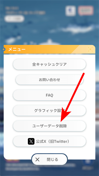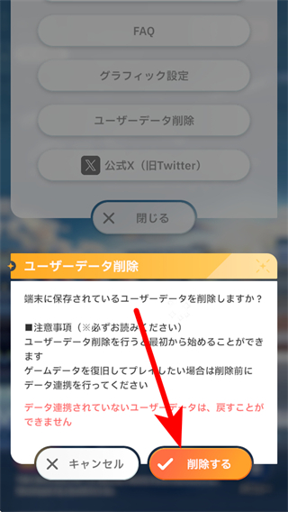 2、在菜单中点击ユーザーデータ削除用户数据删除选项。
