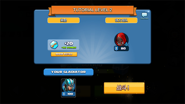 1、操控角斗士战斗,触发连击X3效果,使用技能攻击敌方单位,推进对战。
