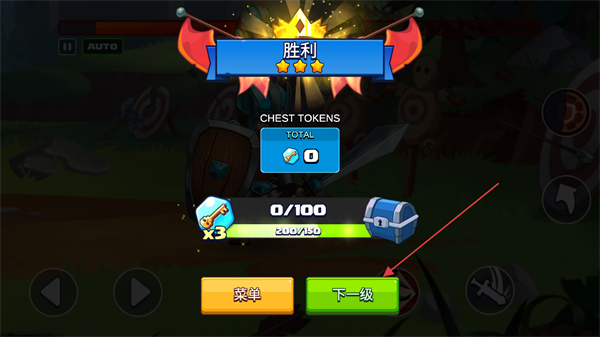 4、对战胜利显示胜利,点击下一级进入后续关卡,继续游戏。