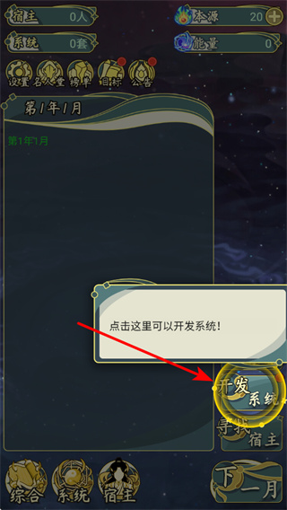 2、在主界面中,点击开发系统选项,这是开启系统获取玩法的核心操作,点击后可进入开发界面,开启系统开发流程。