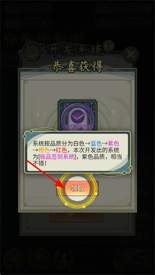 4、开发系统后,点击领取按钮,这是完成系统获取流程的关键步骤,领取后系统将加入自身系统库,助力后续发展。