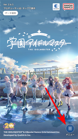 1、打开学园偶像大师游戏,点击右下角的メニュー菜单按钮。