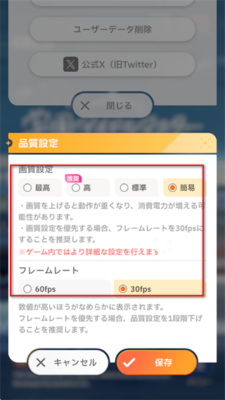 3、在画质设定区域,可选择画质选项,同时可调整フレームレート(帧率)。
