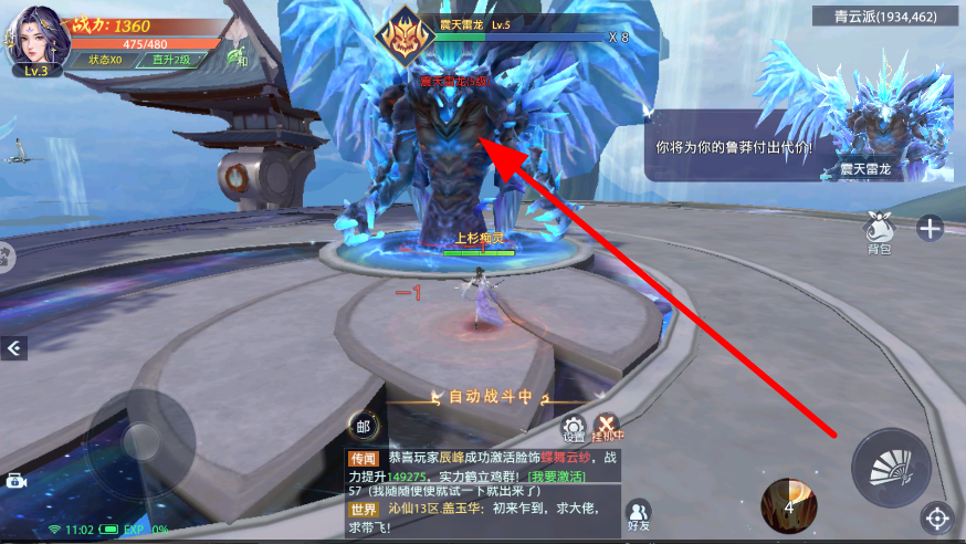 3、任务遇到强大的怪物,击败震天雷龙等,与这些怪物展开战斗,运用技能和策略,击败怪物,获取战斗奖励,提升自身战力。