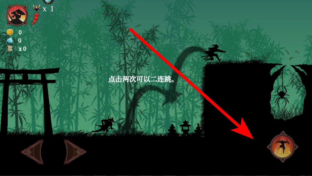 2、然后掌握基本操作,可通过点击相应按钮来控制角色行动,点击两次能实现二连跳,借助这些操作,让角色在场景中灵活移动,应对不同的地形与挑战。