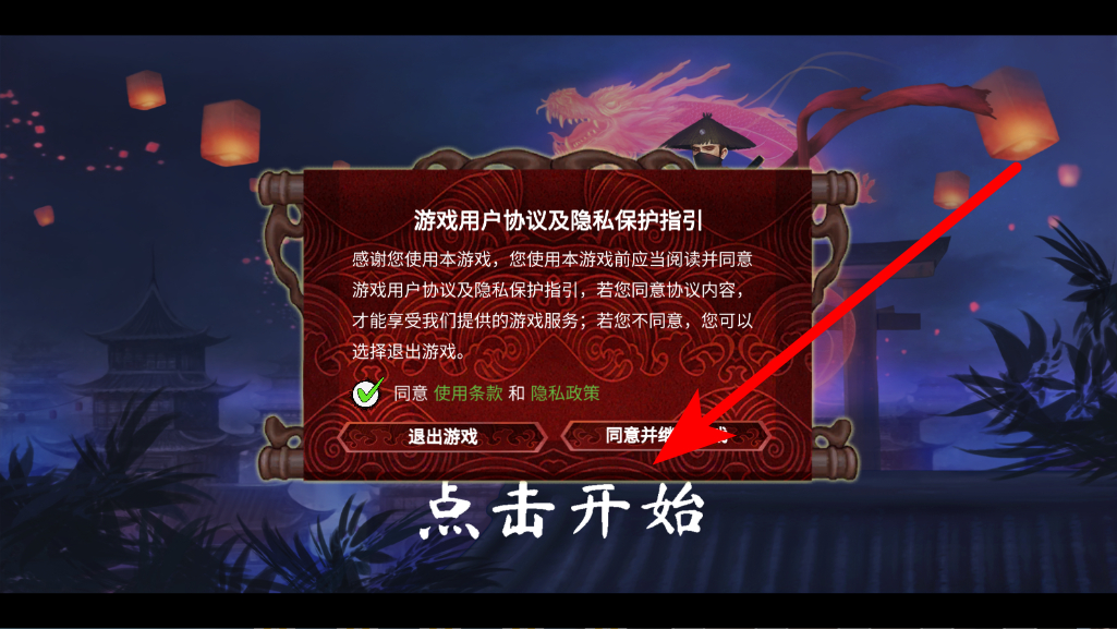 1、首先要进行账号相关操作,在初始界面,若同意相关内容,可点击同意并继续,完成这一步骤后,进入到后续的冒险环节,迈出冒险的第一步。
