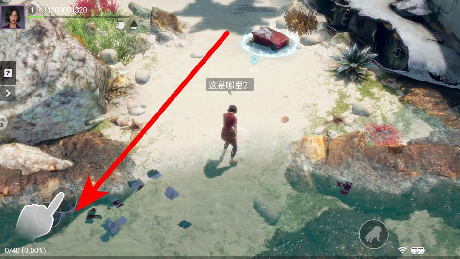 2、然后探索场景,进入荒岛场景后,操控角色在沙滩、岩石等不同区域移动,探索周围环境,寻找有用的线索与物资。