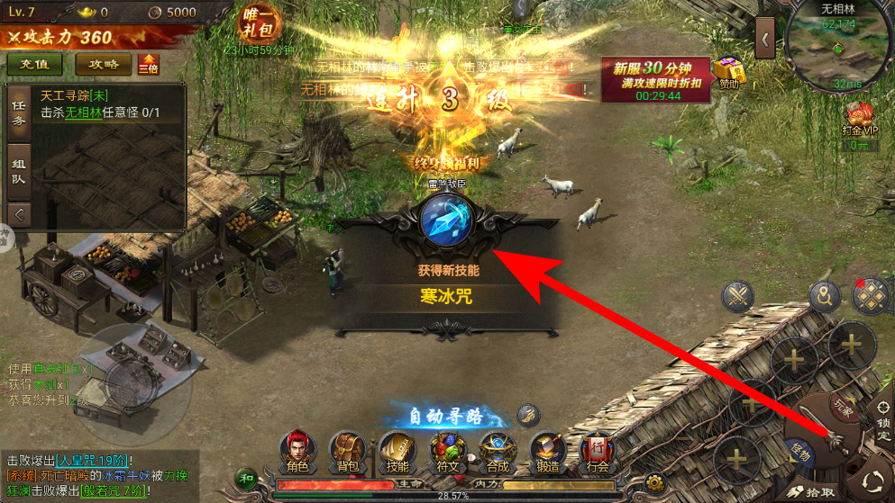 3、随着角色等级提升或完成特定条件,会获得新技能,如寒冰咒、冰霜咒等,新技能获取时会有明显提示,学会新技能后,能丰富战斗手段,提升战斗能力。