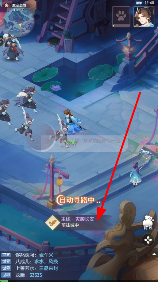 3、任务推进过程中,主线任务会指引玩家行动,当出现自动寻路提示时,角色会自动前往任务地点,方便玩家跟随主线,逐步探索长安世界,解锁更多内容。