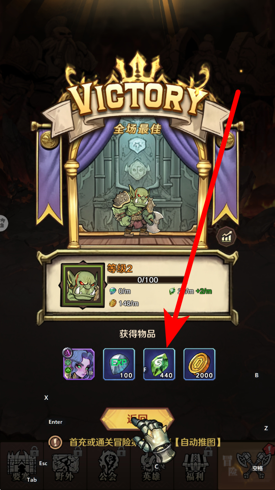 3、获取胜利收益击败敌人后进入结算奖励界面,可获得经验、金币、道具等奖励,这些资源用于英雄养成与装备提升,支撑后续更难关卡挑战。