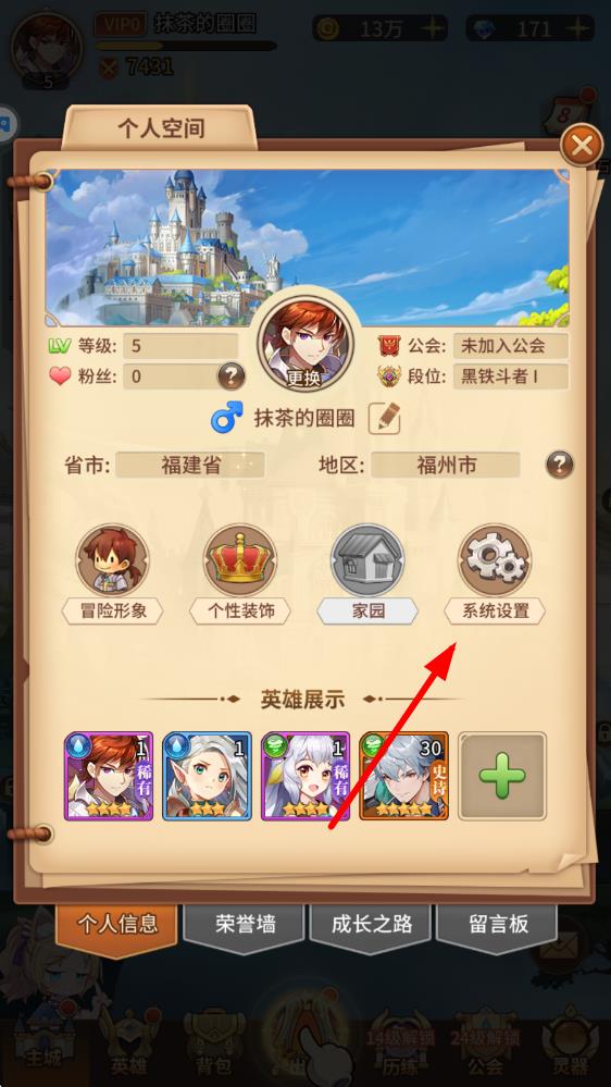 2、在个人空间页面中,找到并点击系统设置按钮,进入系统设置界面。