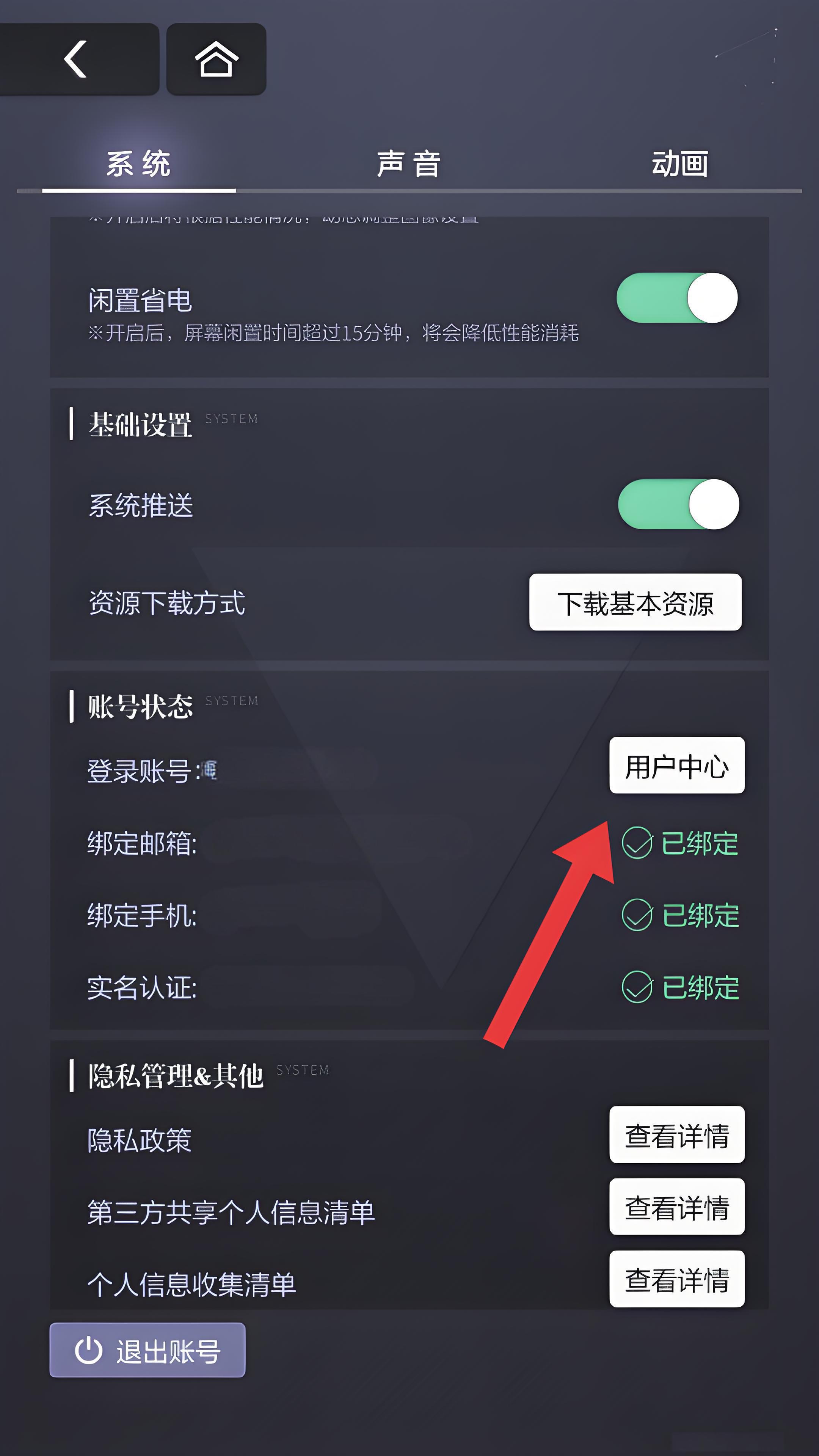 2、在设置页面的账号状态模块中,我们需要点击用户中心的按钮,跳转至米哈游通行证的界面。
