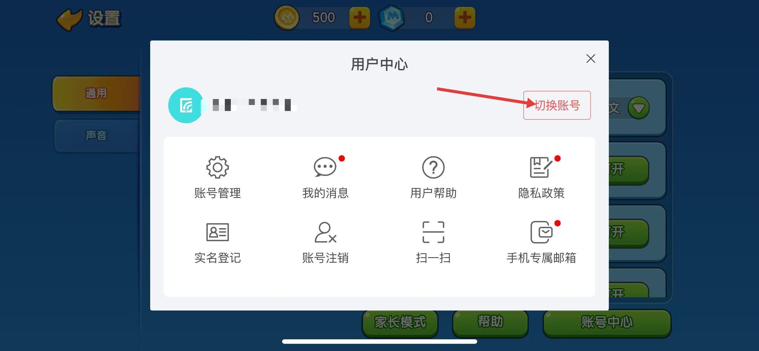 3、在弹出的用户中心窗口,点击切换账号。