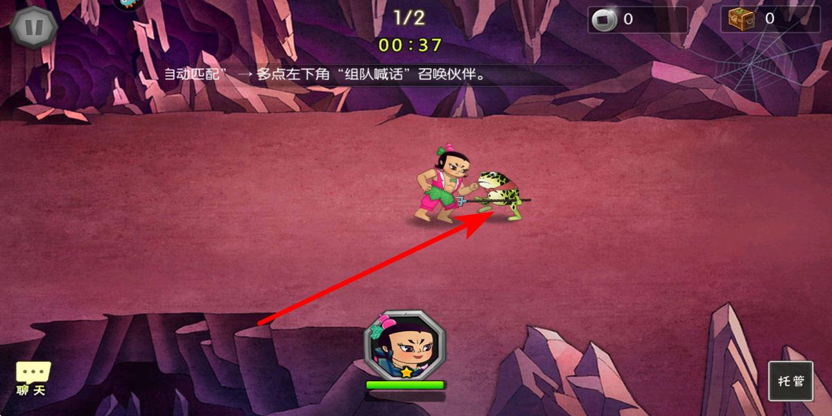 2、组队战斗协作战斗时点击左下角组队喊话功能,召唤匹配队友共同抗敌,操控葫芦娃近身攻击怪物,配合队友输出,提升战斗通关效率。