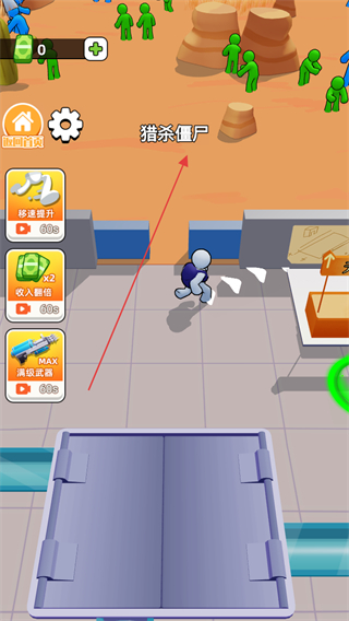 2、前往沙漠区域猎杀僵尸,寻找绿色僵尸目标。