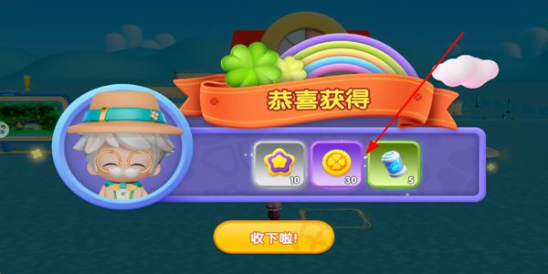 4、任务完成后获取对应的奖励,点击收下啦按钮领取奖励,积累资源助力后续的植物园培育。