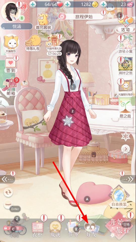 1、打开奇迹暖暖游戏,进入主界面,点击下方菜单栏中的好友图标。